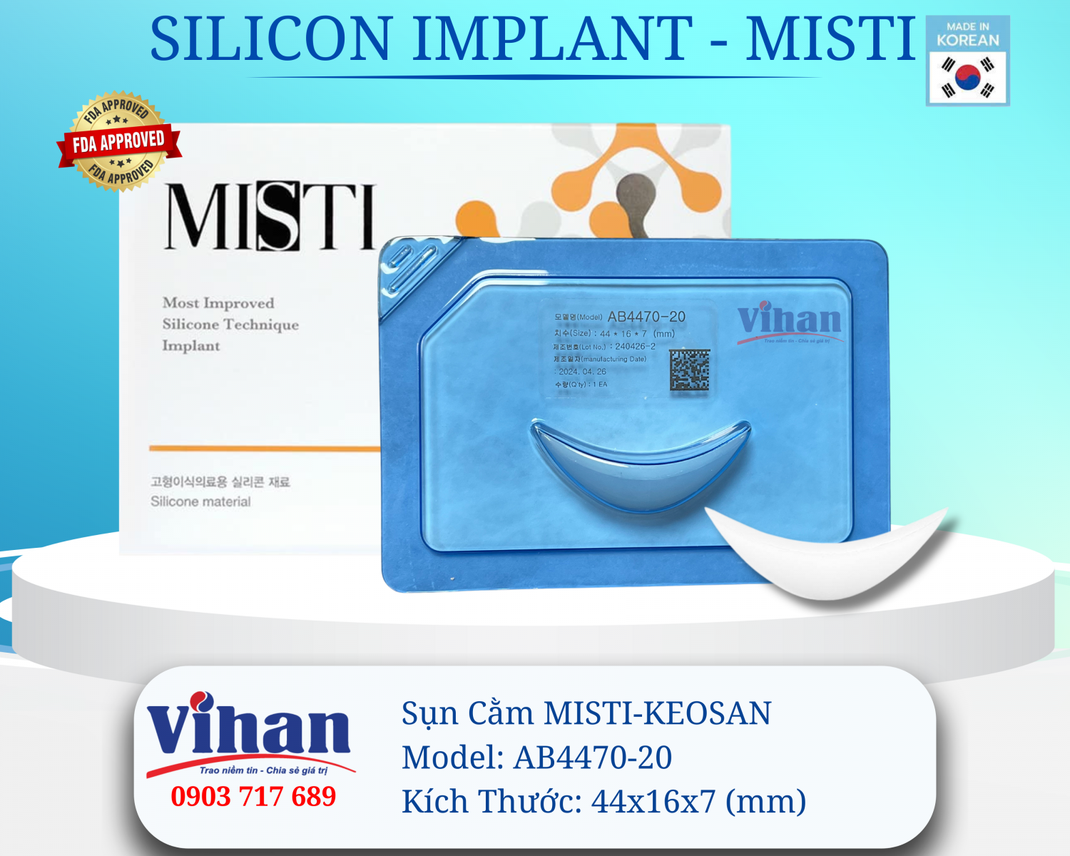 MISTI KEOSAN AB4470-20 là dòng sụn cằm được thiết kế dành cho những trường hợp cần tạo độ nhô cằm rõ ràng hơn, giúp cải thiện tỷ lệ khuôn mặt và tăng chiều sâu vùng cằm một cách cân đối.