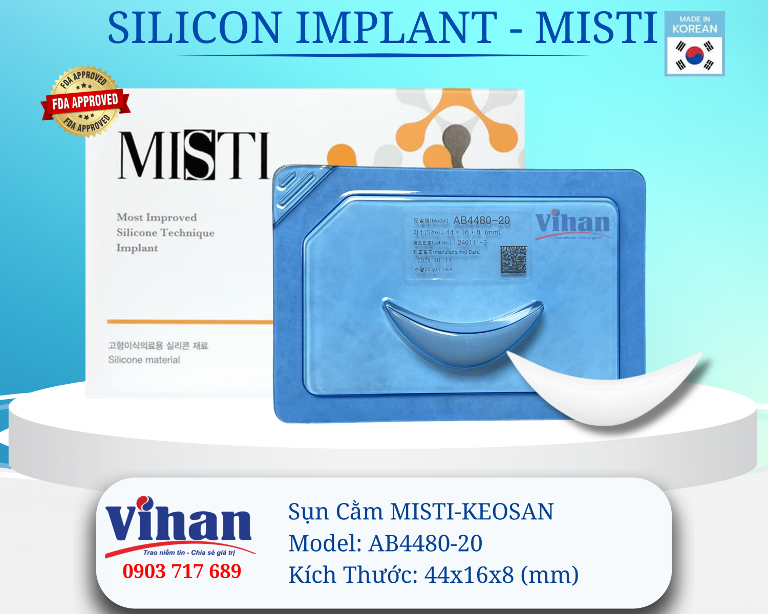 MISTI KEOSAN AB4480-20 là dòng sụn cằm được thiết kế cho những trường hợp cần tăng độ nhô và độ dày cằm rõ rệt, giúp cải thiện trục mặt dưới và tạo dáng cằm sắc nét, cân đối hơn.