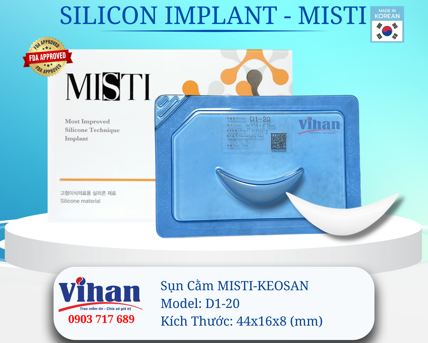 MISTI KEOSAN D1-20 là dòng sụn cằm được thiết kế theo form cong mềm, phù hợp cho các trường hợp cần tạo độ đầy cằm tự nhiên, hài hòa với tổng thể khuôn mặt.