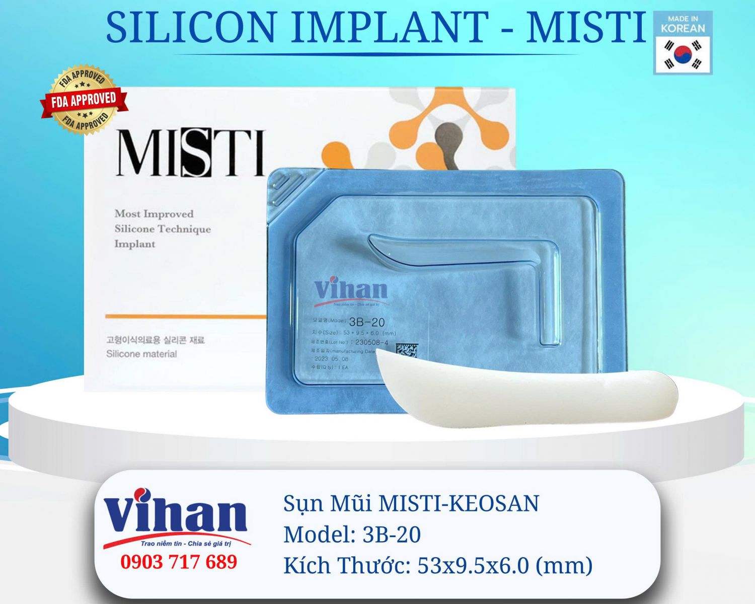 Sụn nâng mũi MISTI KEOSAN 3B-20 được thiết kế dành cho các dáng mũi cần độ nâng rõ ràng nhưng vẫn giữ sự hài hòa tự nhiên.