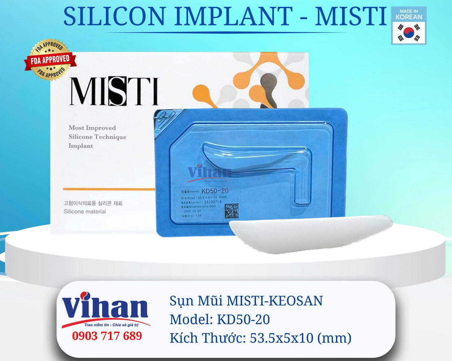 Sụn nâng mũi MISTI KEOSAN KD50-20 được thiết kế dành cho các trường hợp cần nâng sống mũi rõ nét, tạo dáng mũi cao thanh thoát nhưng vẫn đảm bảo sự hài hòa tự nhiên.