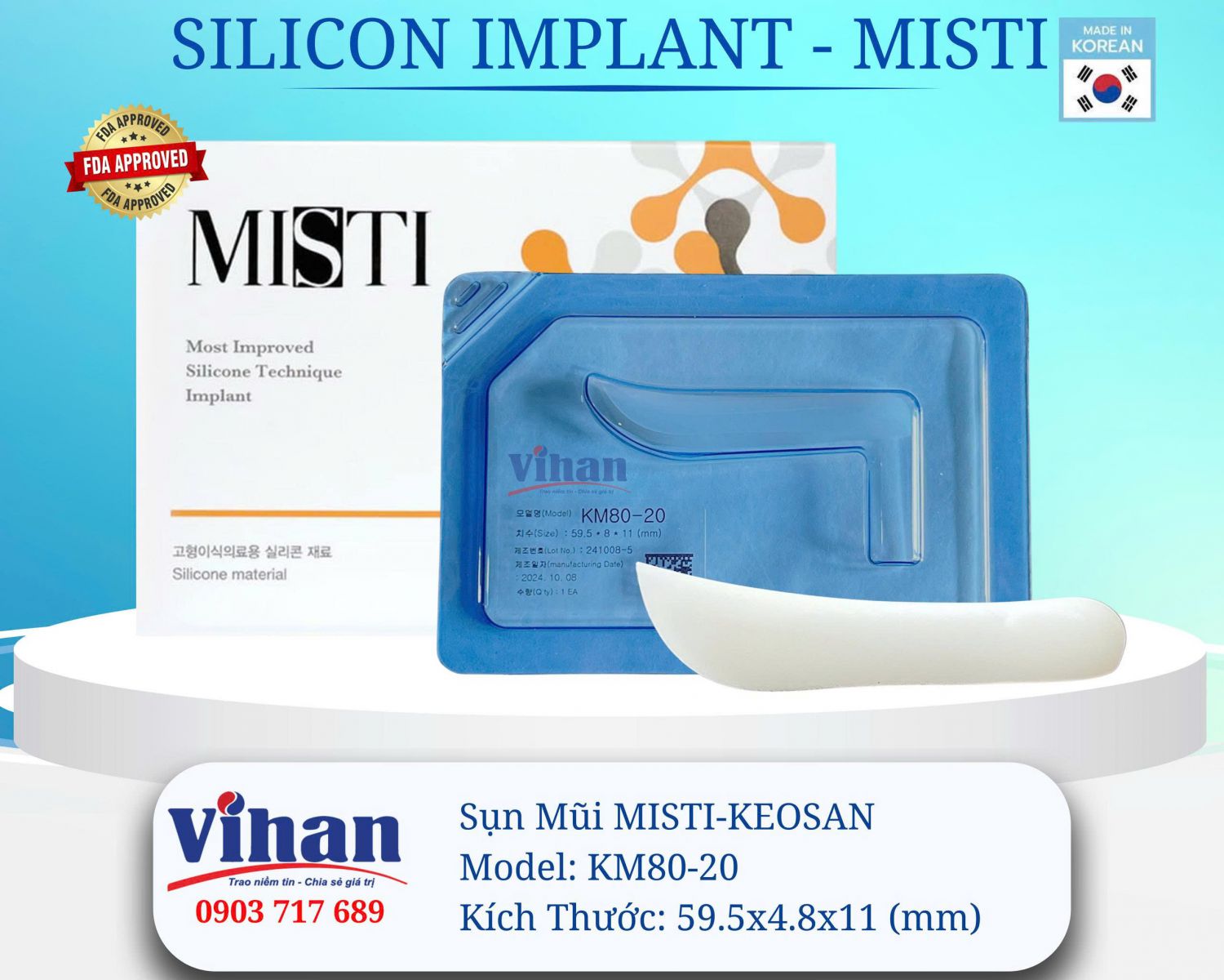 MISTI KEOSAN KM80-20 là dòng sụn nâng mũi phù hợp cho các trường hợp cần tăng độ cao và chiều dài sống mũi, hỗ trợ tạo form mũi rõ nét và liền mạch.