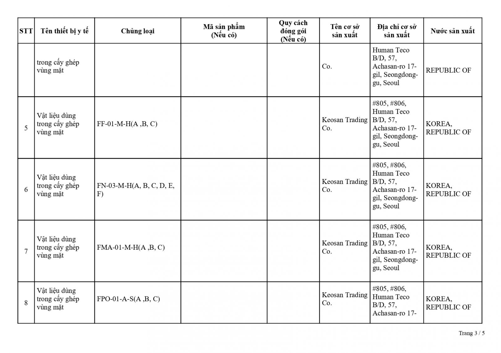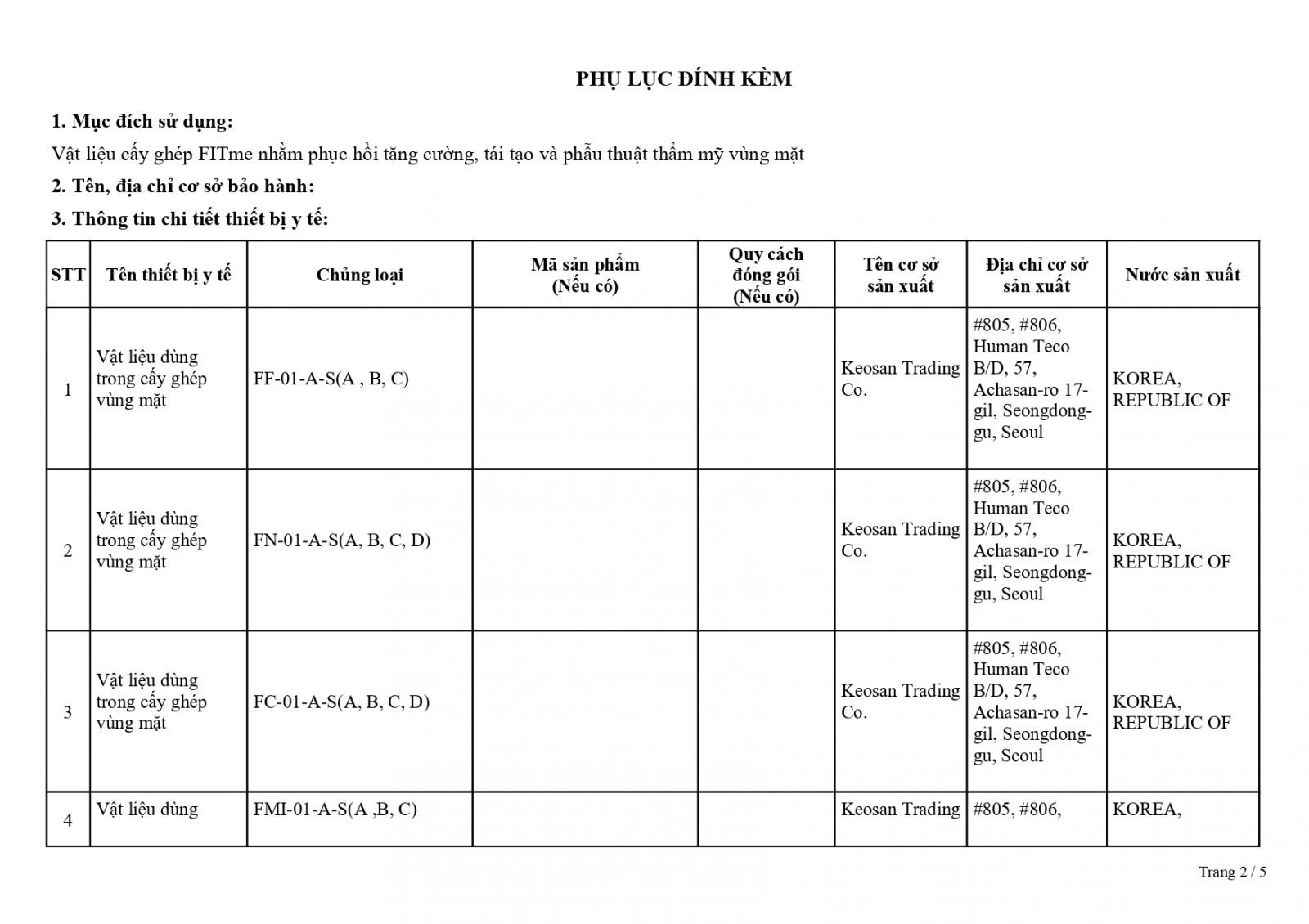 • Số: 2501662/ĐKLH – Vật liệu cấy ghép vùng mặt Fitme 3D