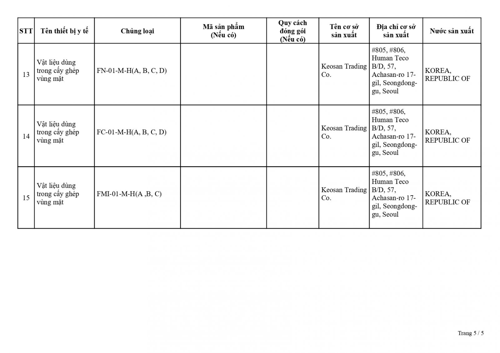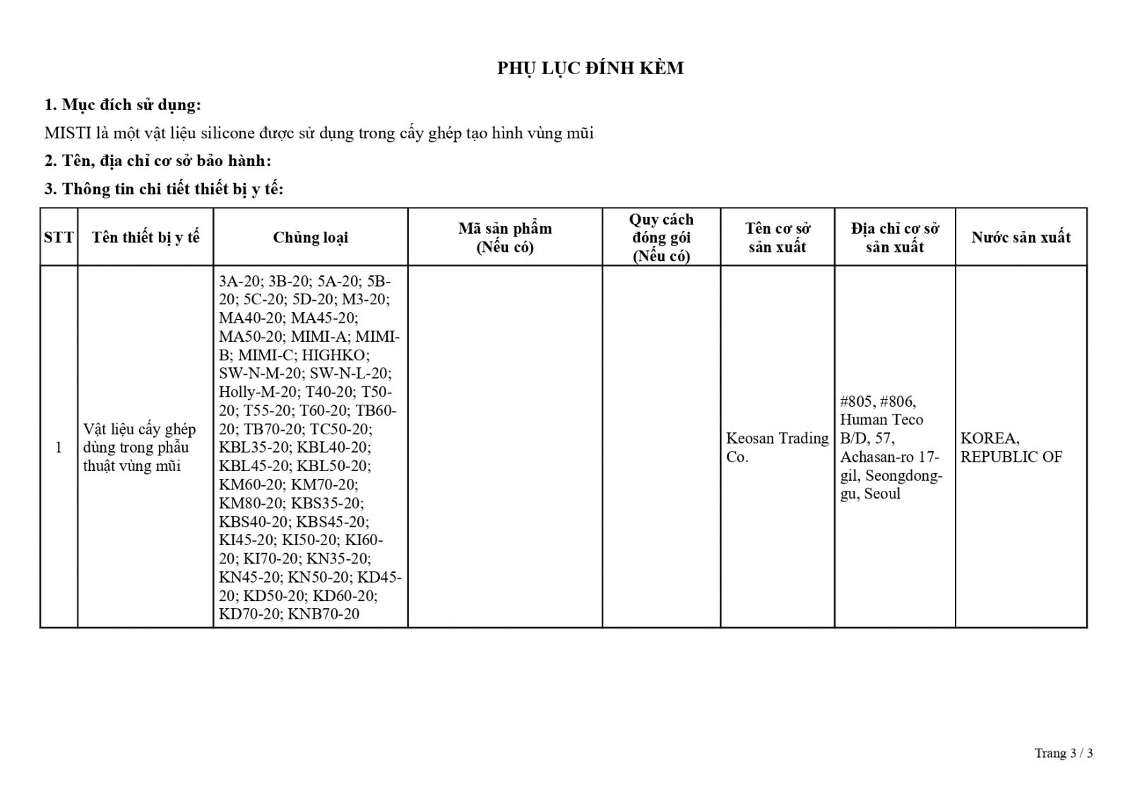 • Số: 2600108/ĐKLH – Vật liệu cấy ghép dùng trong vùng mũi